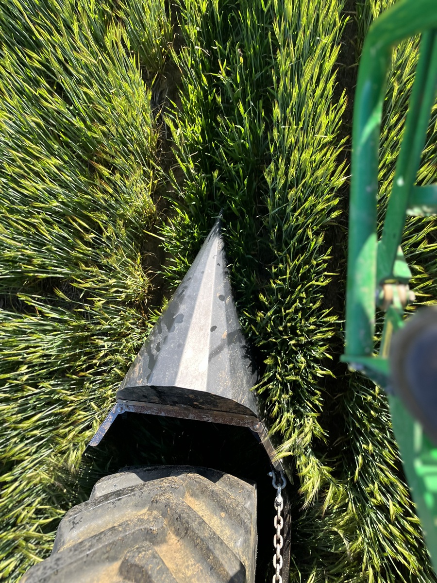 Erin installed the E-Kay Crop Dividers on both the front and rear wheels of his self-propelled sprayer, choosing them over an alternative option that uses an airlift system.